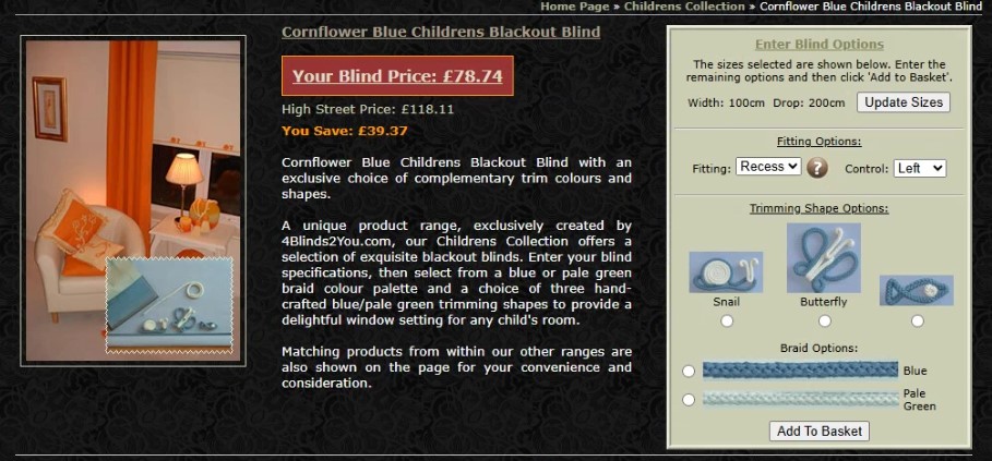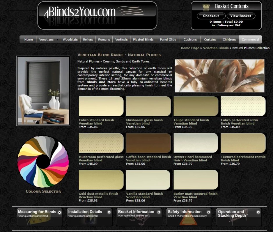 Look at it! Clickable colour wheel, such a selection of products, table-based price calculations based on entered widths and drops, beautiful trimming and braid options – how did it not succeed!?! Being pre-Wordpress and Yoast, SEO was a lot more of a dark art and getting on that first page of Google was hit and miss. Perhaps we should have paid for some sponsored search results?  I don’t know; the results weren’t earth-shattering and the relief from actually getting the thing finished and working (on top of my regular IT work) probably left me burnt-out to the whole enterprise. I still maintain it was a superb effort for the time.